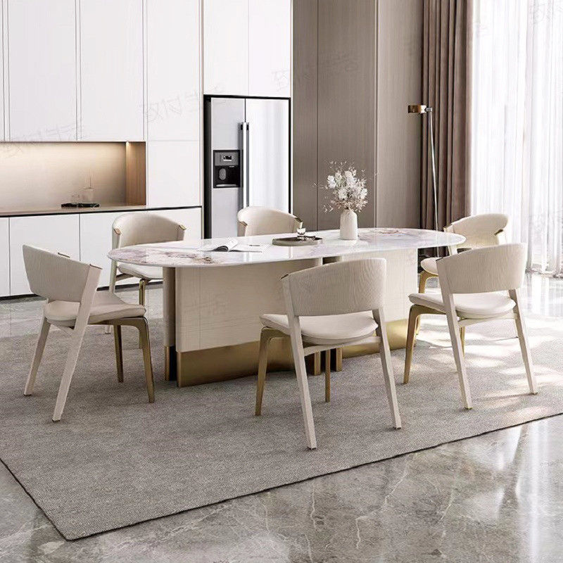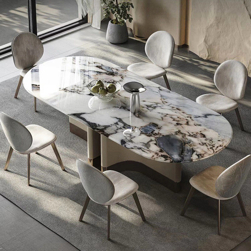고품질의 대리석으로 만들어진 이 현대적인 테이블은그것은 당신의 집의 스타일을 높이고 당신의 식사를 위해 정교한 환경을 제공 할 것입니다..